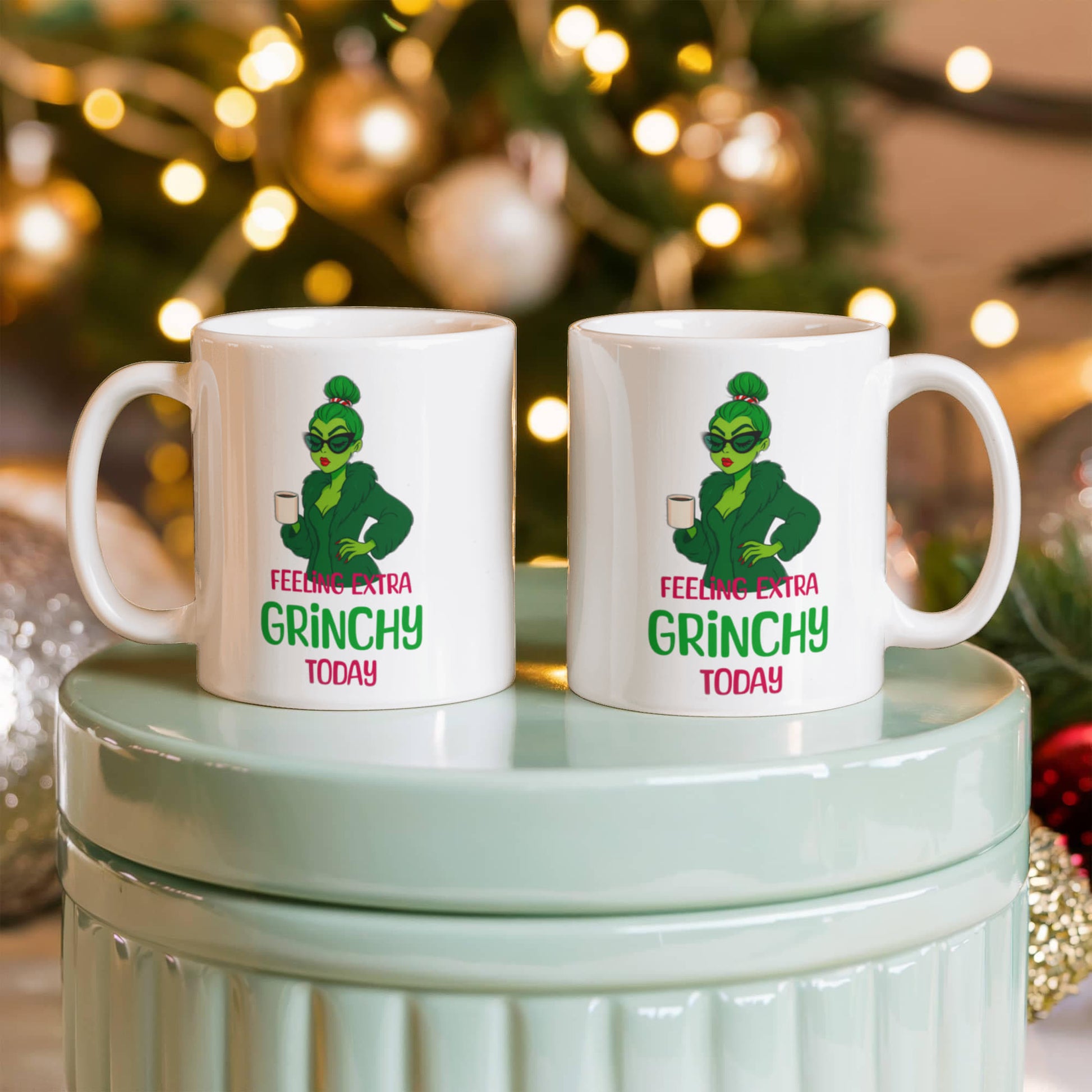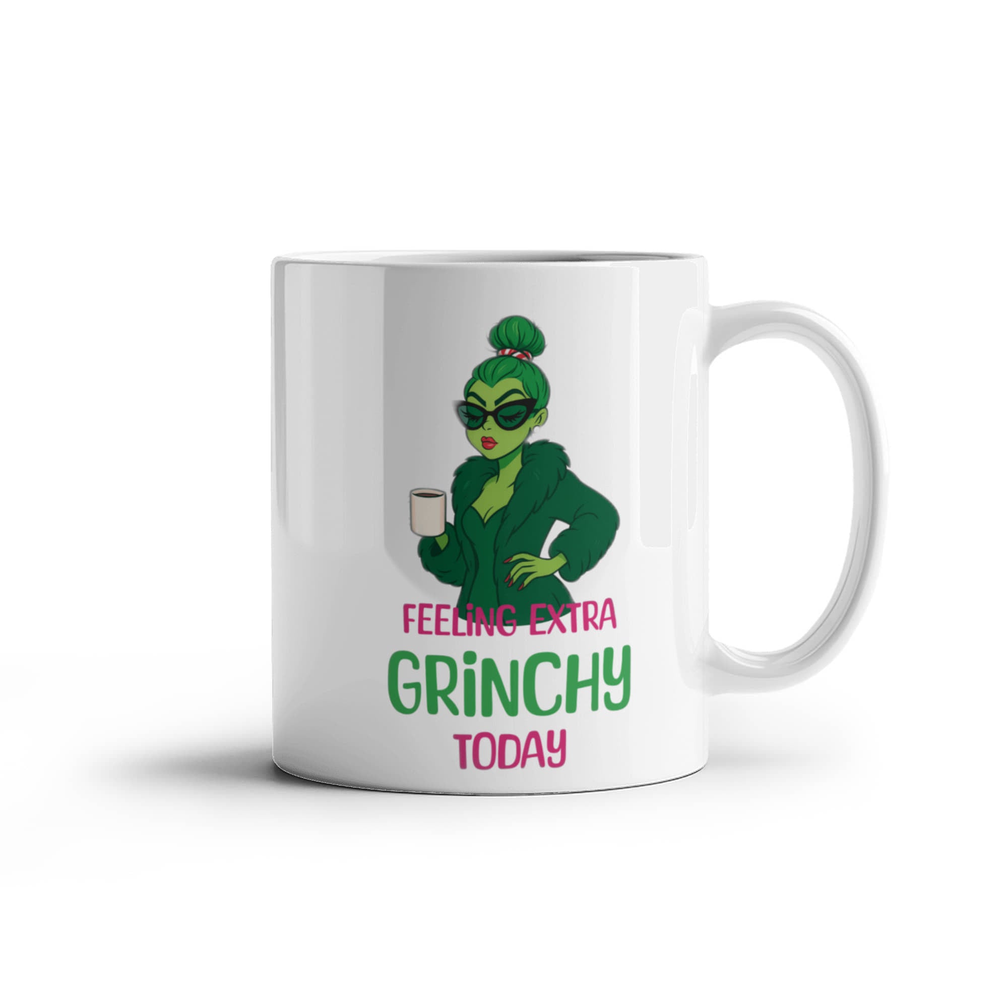 A mug for anyone who wakes up a little… Grinchy. 😏